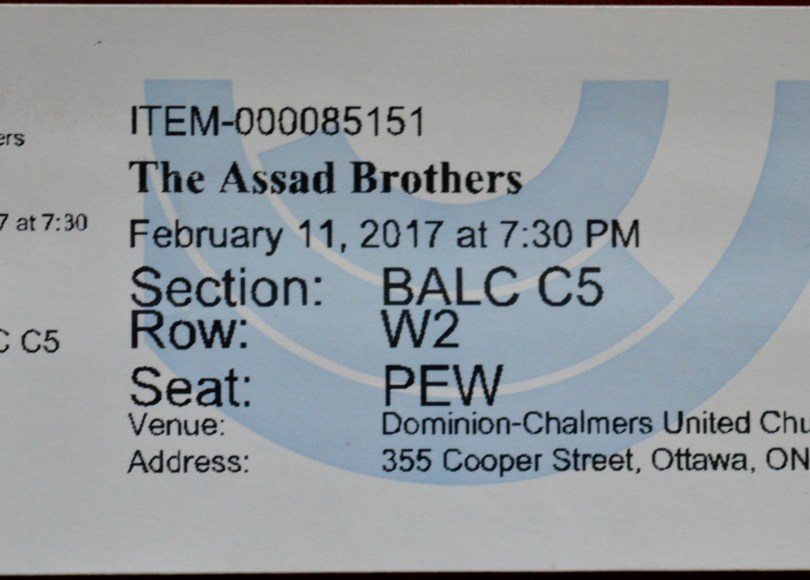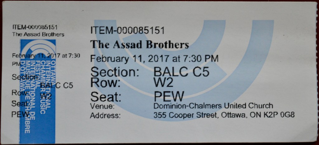 Scrolling through the email I hit upon the following: “True living legends will take the stage when internationally-loved guitarists Assad Brothers present their classical blend of Europe and South America on February 11th, 2017 at Dominion-Chalmers United Church.”