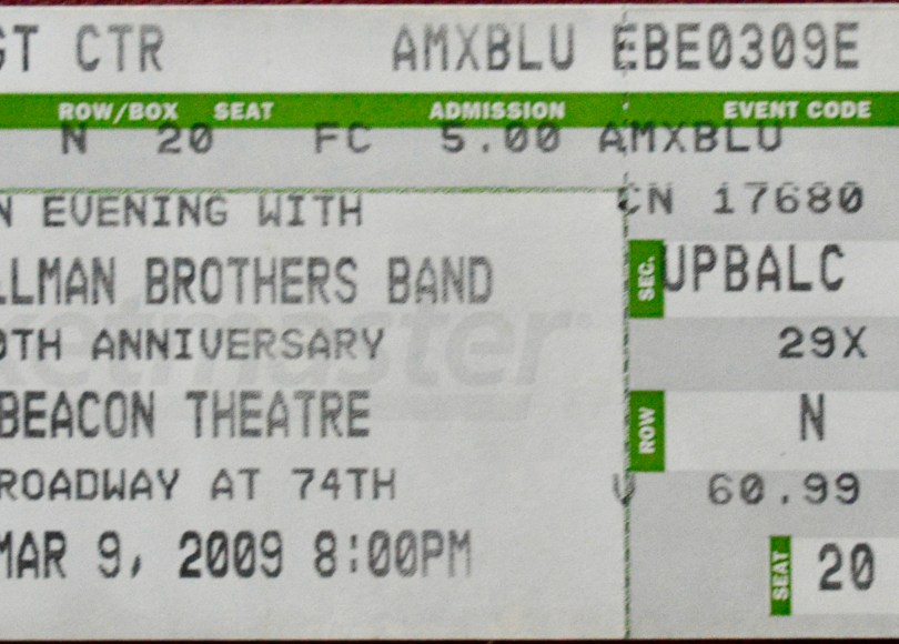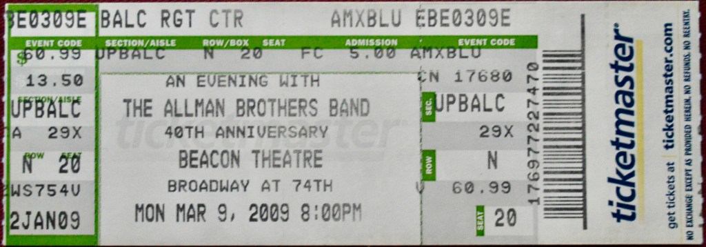 On March 9th, 2009 I was trekking northward on my way home from the big Phish comeback shows in Hampton, Virginia. I had m’lady and a couple of friends in tow and we were headed to the Big Apple for what would prove to be my first of several Allman Brothers concerts at their home-away-from-home: the Beacon Theatre.