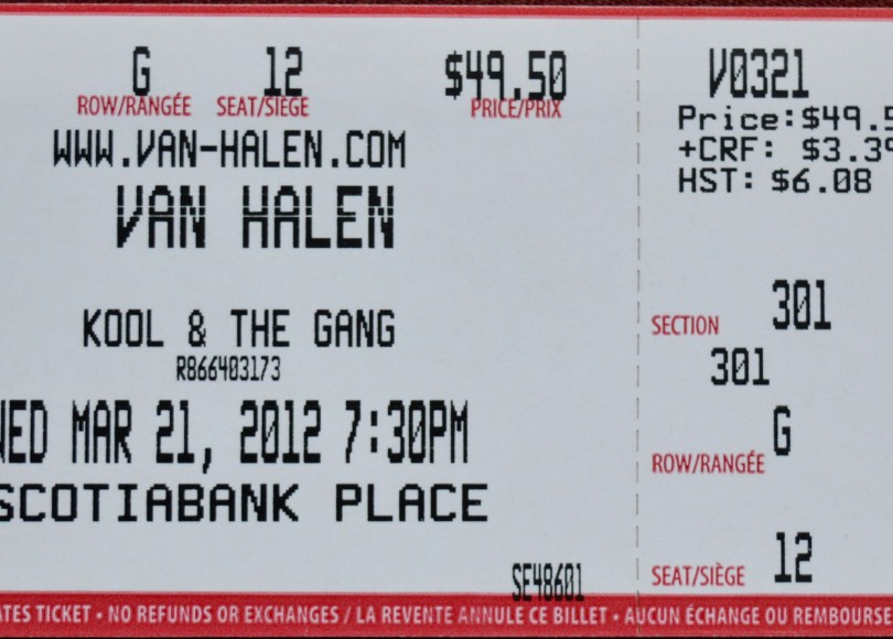 On March 21st, 2012 I drove thirty kilometres or so to my local arena to see Van Halen. I had seen the band in Montreal about five years previous and had a great time at the show so I was anxious for another chance to see Van Halen (almost) as they were intended to be seen.