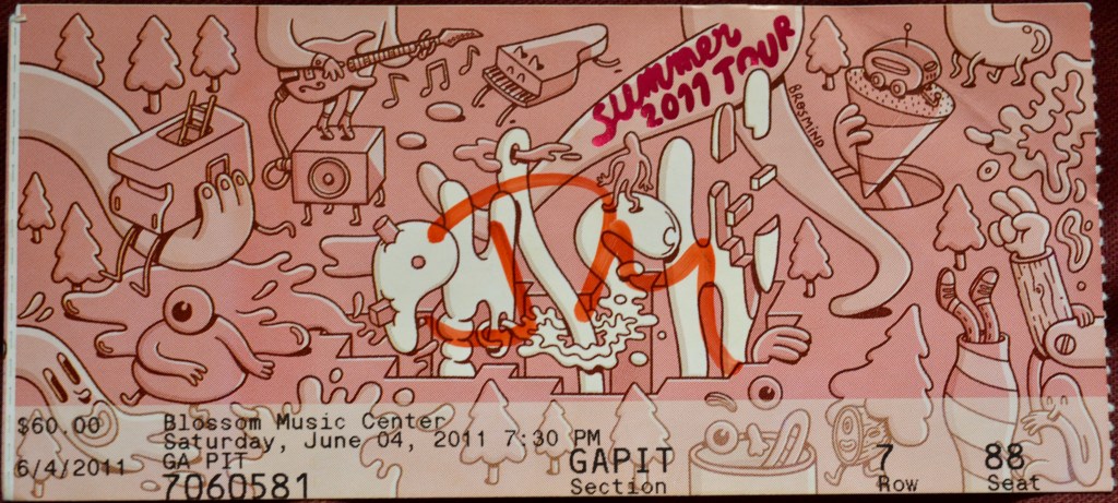 On June 4th, 2011 I pulled into Ohio’s Blossom Music Center for the second of a little two-night Phish run. This was my first time at the venue and I was pleased to find that the parking area was nothing but lawn and trees with not an inch of asphalt in sight. I followed the waving arms of the traffic control dudes and parked in the park next to a trio of young partiers who had already set up their huge sound system.