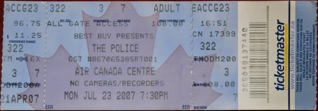 On July 23rd, 2007 I finally saw The Police live. I would say that the concert came after many years of anticipation but that would be utterly false; I never dreamed I would ever see The Police. I was into them (almost) every step of the way, though it wasn’t until I had matured considerably that I realized just how outstanding and unique the band was.
