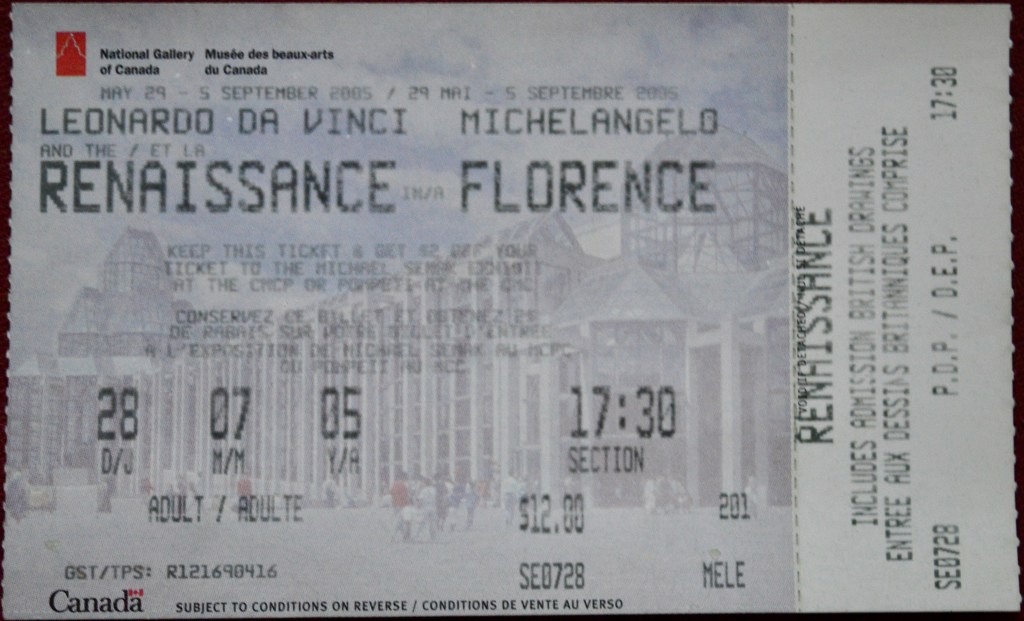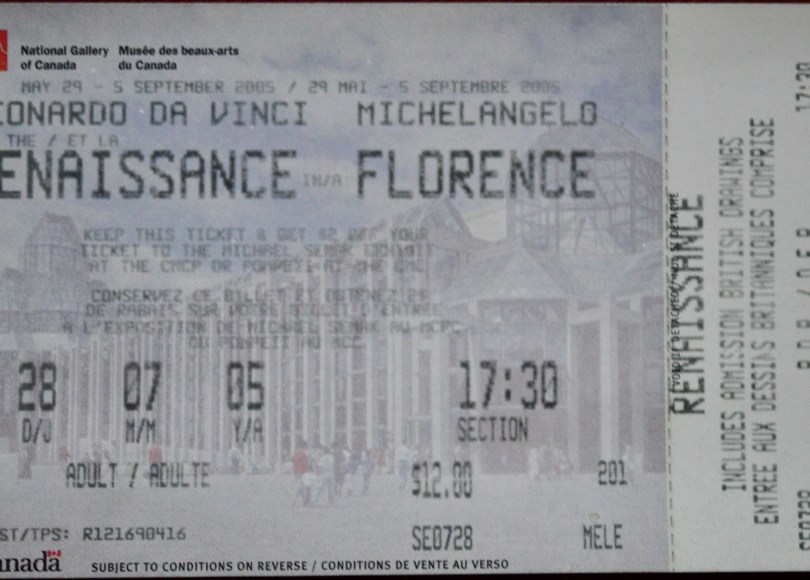 And on July 28th, 2005 (just sixteen days after that fateful meeting) our first official date came to fruition when I shelled out $24 for two tickets to the National Gallery. Okay, given that we were already ‘dating’ by then (since smooching for the first time after Kid Rock’s Bluesfest set) I might have suggested we go Dutch. But we’re still together so that’s besides the point. so maybe I did pay for both of us after all.