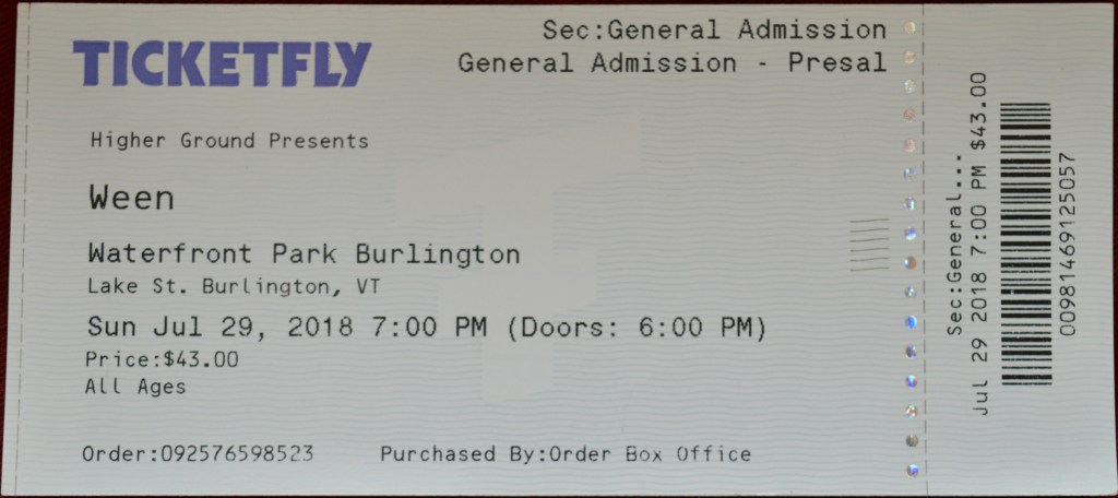 On July 29th, 2018 I drove to Burlington, Vermont to see the mighty Ween. I had giddily made plans to see what I’ve long called my favourite live band twice in the previous week (in Columbus, Ohio and Pittsburgh) sandwiched around a performance of The Wall – The Opera in Cincinnati to make up for you-snooze-you-losing out on the penultimate TW-TO show in Montreal the year before, but when friend after friend bailed on joining me on such an epic roadtrip I bailed in favour in this single show in Burlington.
