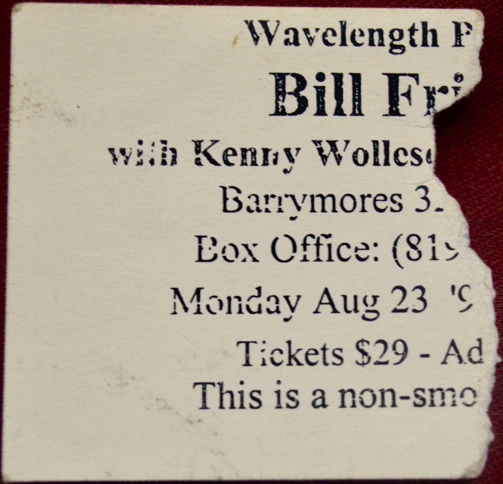 Of course I was hoping to hear a lot of music off of Gone, Just Like a Train it this concert but if I remember correctly I didn’t. It’s weird; I vividly remember being at this show and spending most of my time gaping up at the stage in joyful wonder yet I can’t actually visualize anyone on stage. I believe it was indeed a trio up there (Frisell certainly had a band with him. The ticket indicates that the drummer was Kenny Wolleson – who has played with his fair share of big-time musicians too – though I have no idea if Krauss was part of it) and while the set was light on material I was familiar with I remained enthralled throughout. Oddly, when I think back to the next time I saw Bill Frisell about a year and-a-half later I can picture the players like I’m watching a video in my head. There was lots from Gone, Just Like a Train at that show, and Bill kept his back to the audience for the entire set.