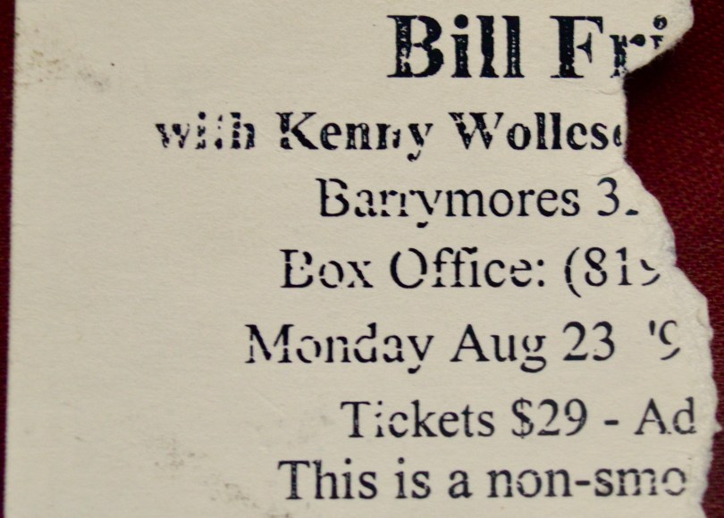 Of course I was hoping to hear a lot of music off of Gone, Just Like a Train it this concert but if I remember correctly I didn’t. It’s weird; I vividly remember being at this show and spending most of my time gaping up at the stage in joyful wonder yet I can’t actually visualize anyone on stage. I believe it was indeed a trio up there (Frisell certainly had a band with him. The ticket indicates that the drummer was Kenny Wolleson – who has played with his fair share of big-time musicians too – though I have no idea if Krauss was part of it) and while the set was light on material I was familiar with I remained enthralled throughout. Oddly, when I think back to the next time I saw Bill Frisell about a year and-a-half later I can picture the players like I’m watching a video in my head. There was lots from Gone, Just Like a Train at that show, and Bill kept his back to the audience for the entire set.