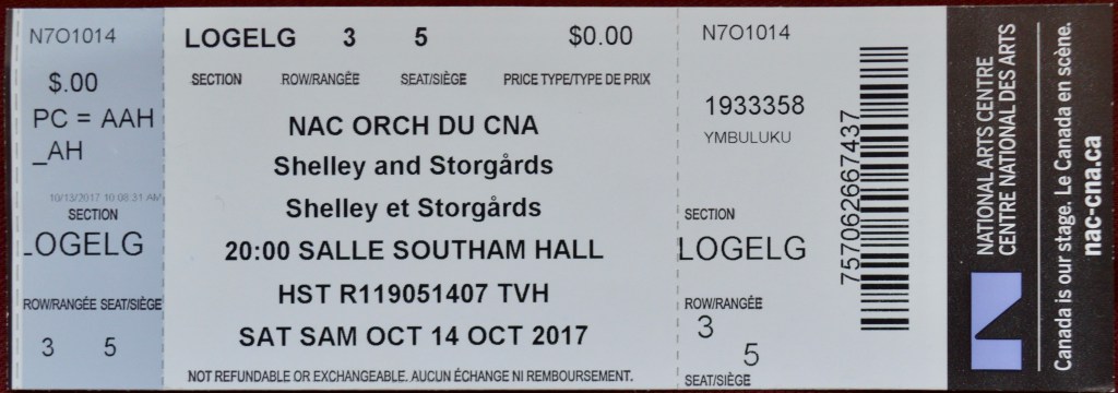 Since I began my tenure working (very part-time) with the National Arts Centre Orchestra oh-so-many years ago I have been fortunate to receive – at seemingly random intervals – emails offering free tickets to some NACO concert or another. I don’t always take them up on the tickets but I do whenever I can. One of those whenevers was on October 14th, 2017, and I’m really glad I went.