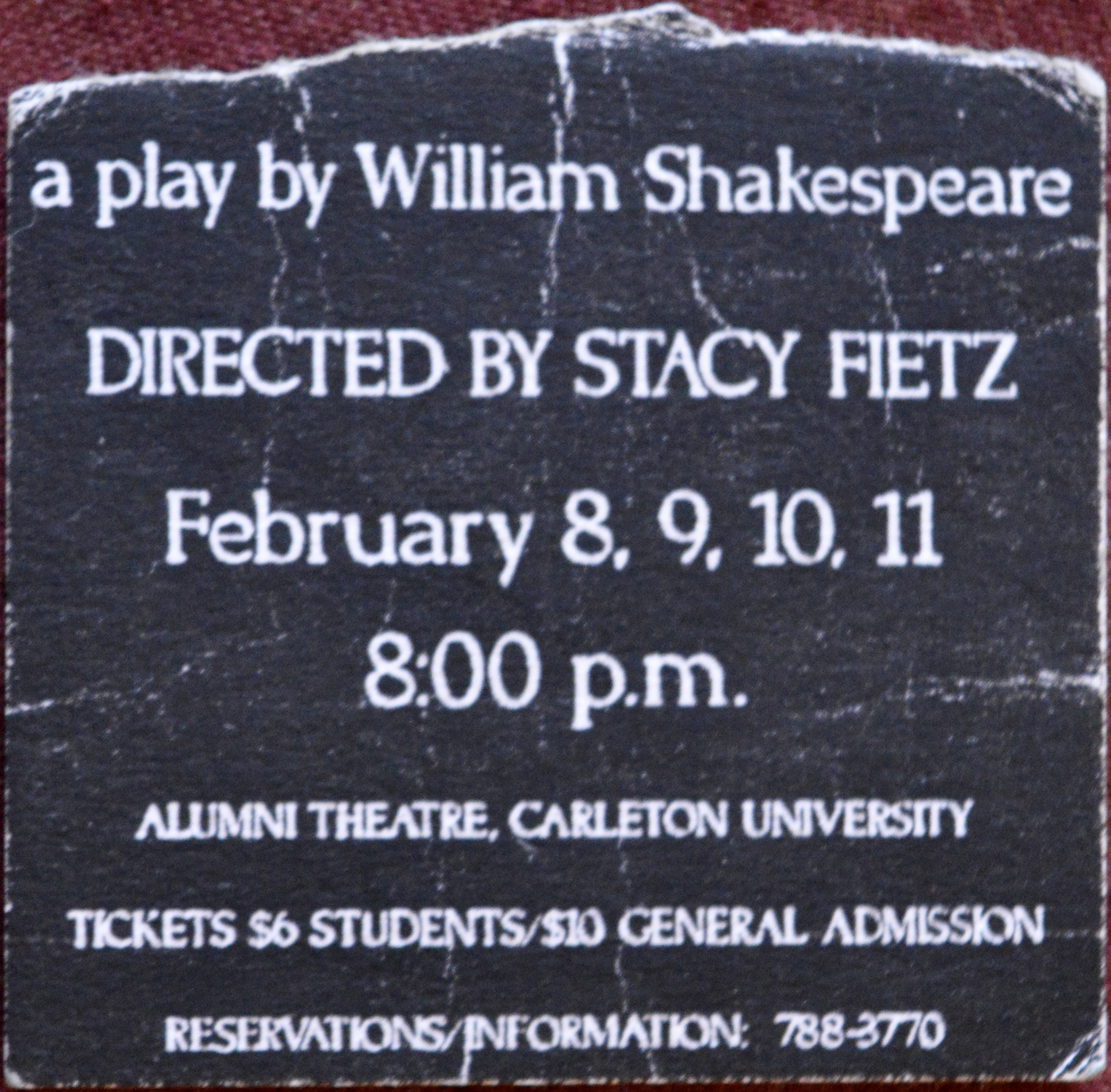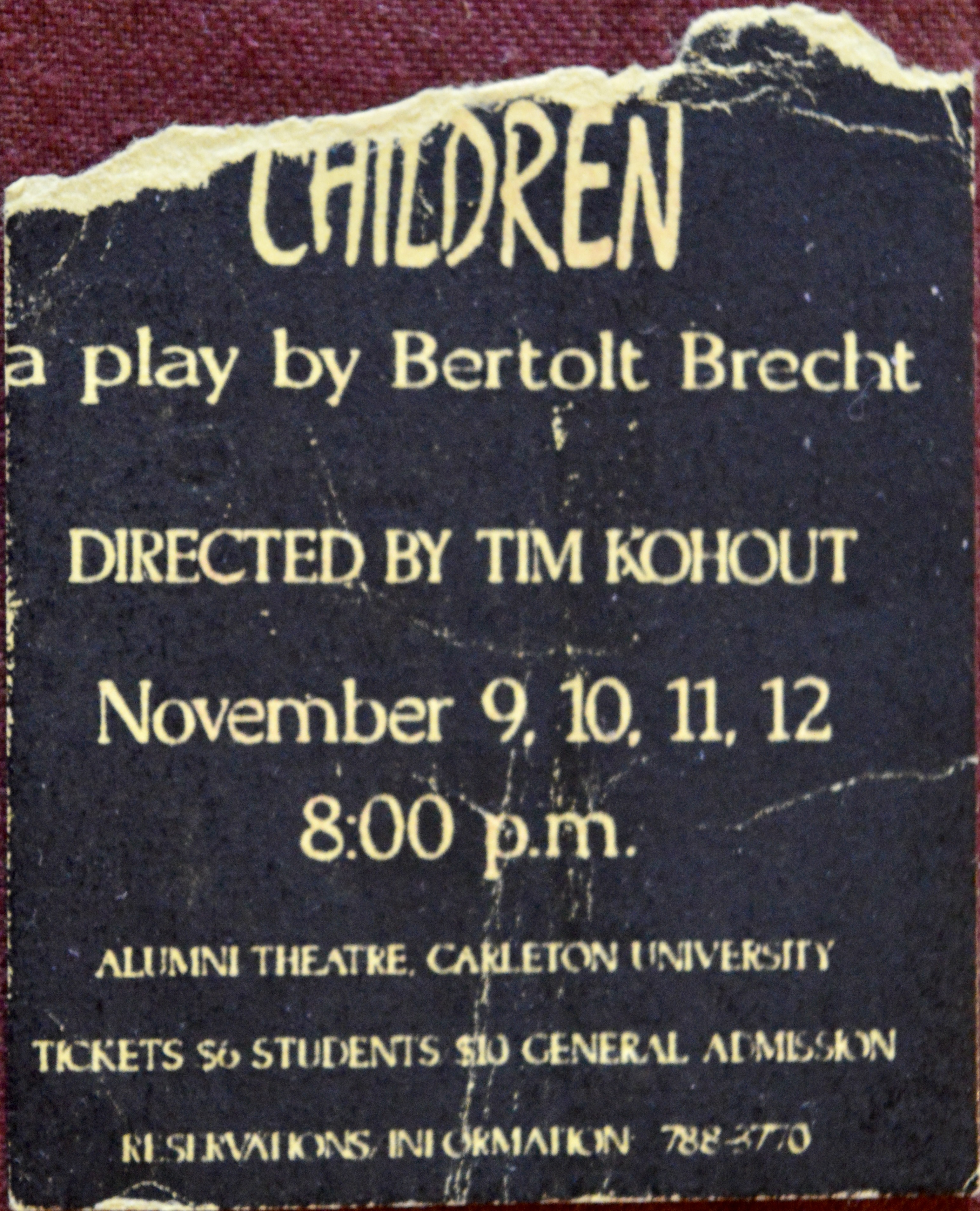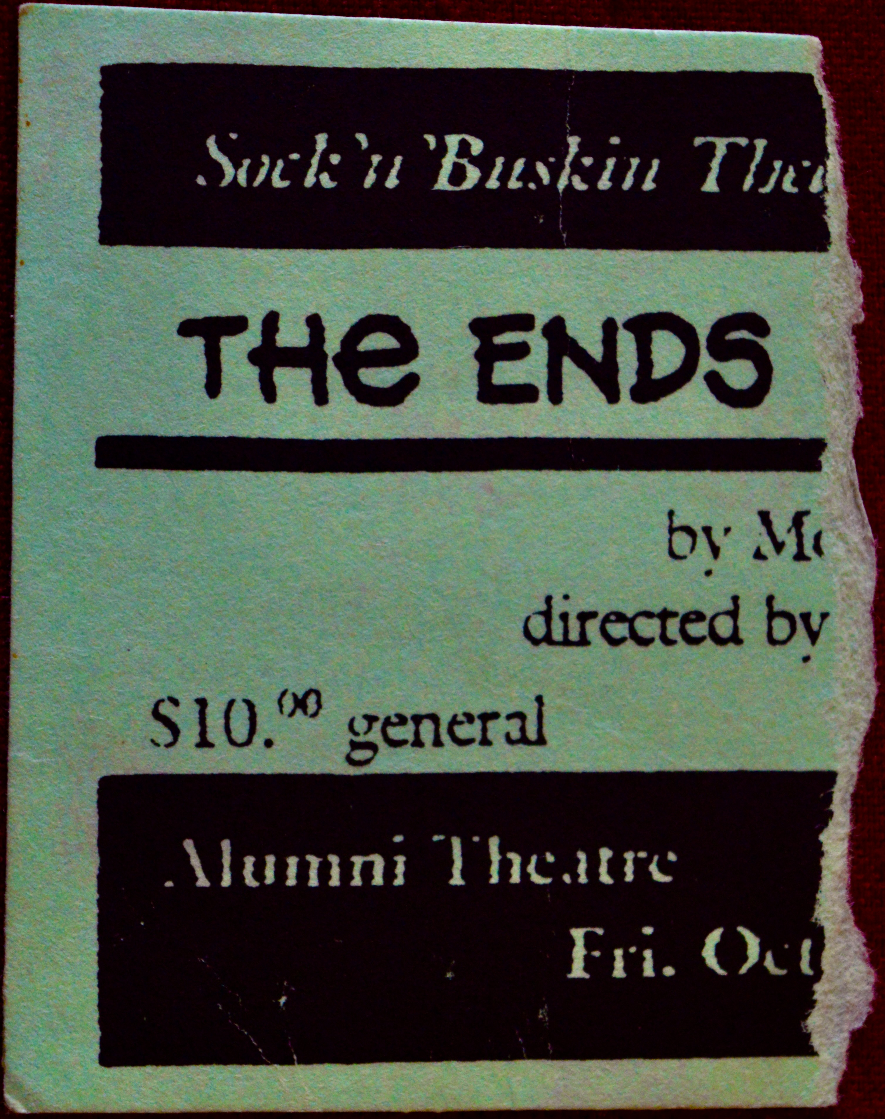 In my personal role as “Supportive Friend” I actually attended two showings of this play (a practise that soon became a habit). In fact this ticket stub is from the performance two days later; I kept both, of course, but this one is in better condition. If I may, I believe I might have seen Rico (as we old friends still call him, after dispensing with his earlier and much sillier nickname “Hippie” which – even when shortened to “Hip” – remained very in-apropos* despite his long, meticulously brushed Joni Mitchell-like golden hair) in every single one of his roles, and if I may even further: I wouldn’t be surprised one bir (sic)** if I saw more onstage acting Eric-ing than anyone else. Here is the long-and-short of Rico’s career-cum-hobby as I saw it, a list I include here a) to better illustrate my Oscar-worthy performance as Best Supportive Friend and b) to remain thorough in my ticket storying whilst saving myself an awful lot of typing: