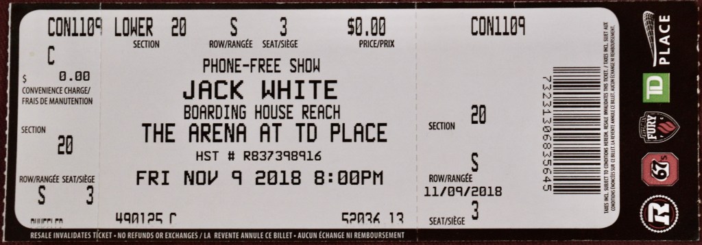 So when he announced a show at the TD Place Arena (née the Ottawa Civic Centre) just a mile from home I was in. When he further announced that his tour would be cellphone-free – all devices were to be locked in bags and kept out of sight – I was in with joyous gusto. I’m not sure if I’ve adequately related through these ticket stories my deep loathing for cellphones; if not I’ll work at it a little harder.