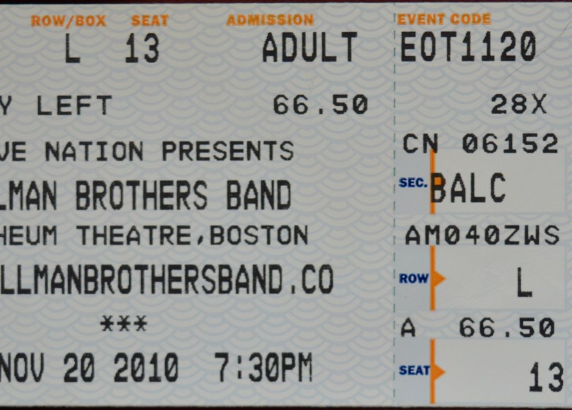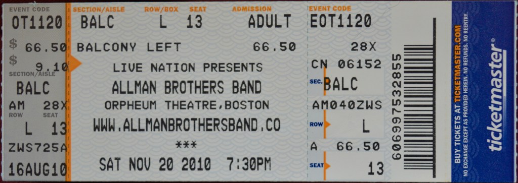November 20th, 2010 was the final night in the Allman Brothers Band’s three-night run at The Orpheum in Boston. I caught the last two shows and spent the weekend staying with friends.