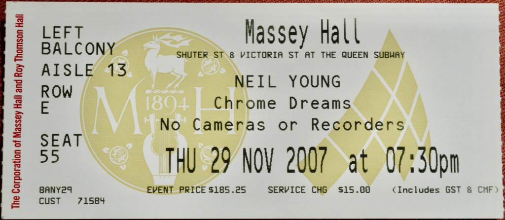 Neil’s electric set was wonderful once again, but I let it wash over me much like his acoustic set did, as an aural massage on a tired and strained pair of eardrums. I sat there and let one of the world’s greatest rock and rollers throw his best at me and took it as comfortably as was possible in one of Massey Hall’s tiny balcony seats.