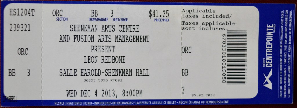 On December 4th, 2013 I saw Leon Redbone at the Shenkman Theatre out in the east end of Ottawa. I’m pretty sure this was my first time attending a show at the new-ish Shenkman Theatre, which struck me as a slightly nicer, slightly smaller version of the Centrepointe Theatre which, sitting out in Ottawa’s west end as it does, now bookends the Shenkman Theatre quite well.