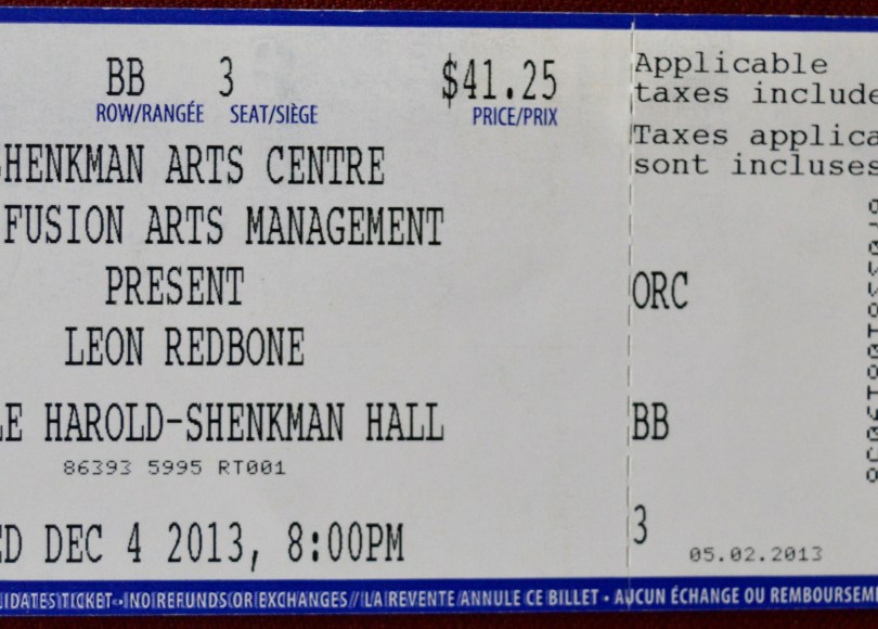 On December 4th, 2013 I saw Leon Redbone at the Shenkman Theatre out in the east end of Ottawa. I’m pretty sure this was my first time attending a show at the new-ish Shenkman Theatre, which struck me as a slightly nicer, slightly smaller version of the Centrepointe Theatre which, sitting out in Ottawa’s west end as it does, now bookends the Shenkman Theatre quite well.