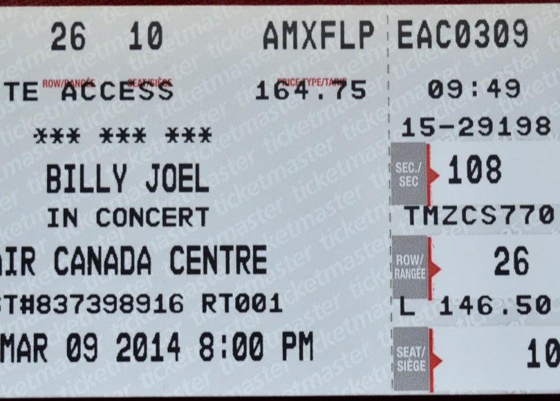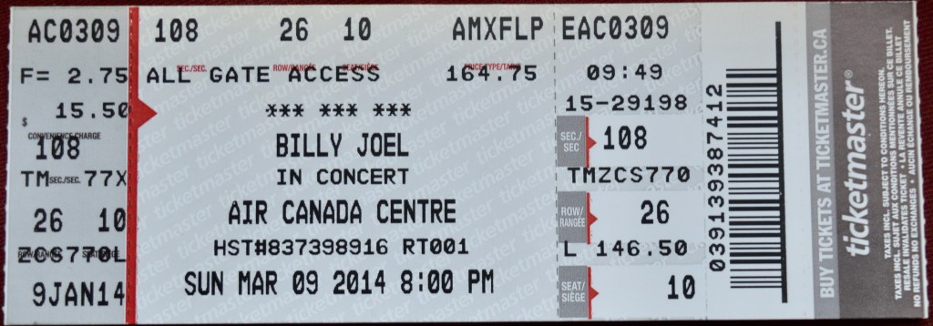 On March 9th, 2014 I drove to Toronto (solo – I couldn’t convince m’lady to go, not even for a free ticket) to see Billy Joel. He had always been on my Must See list so when I saw the Toronto date announced I pounced, picking up a pair of pricey tickets for his show at the Air Canada Centre.