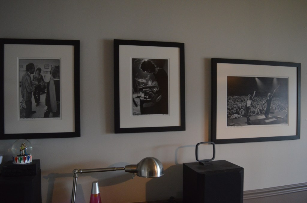 Incidentally, at some point during the months between the lecture and me winning the print I decided to buy an Ethan Russell photo for m’lady as a right-back-atcha birthday gift. It’s a fantastic shot of the band onstage in Illinois in 1969 although if you ask me it’s really a photo of the hundreds of faces in the audience, each of whom is somehow fully distinguishable and magically in focus. It’s big and it was expensive but we both love it to pieces. Funny thing though, I ordered myself another Ethan Russell print at the same time as a decoy so m’lady wouldn’t be suspicious when the item(s) were delivered. For that print I selected a shot of the band hanging out backstage with Chuck Berry. Unlike the other photos I don’t consider this one very “arty”. Rather, it’s a perfectly candid picture of one of my heroes who is clearly very excited to be in the presence of one of his heroes and for that, I love it.