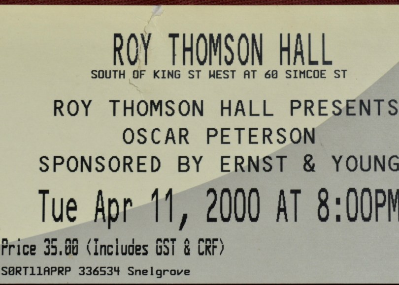 April 11th, 2000 was the last time I had the honour and privilege to hear the great, great Oscar Peterson (1925-2007) play the piano. I had seen him play in Montreal back in the ’90’s and I had watched with much due respect as the elder statesman accepted an award of some sort at an afternoon ceremony in Gatineau, Quebec a few years after this concert. And though I should have seen him play once more at a show in Ottawa (one that he ended up cancelling due to health concerns) I’m happy that Oscar was able to play music as late in life as he did.