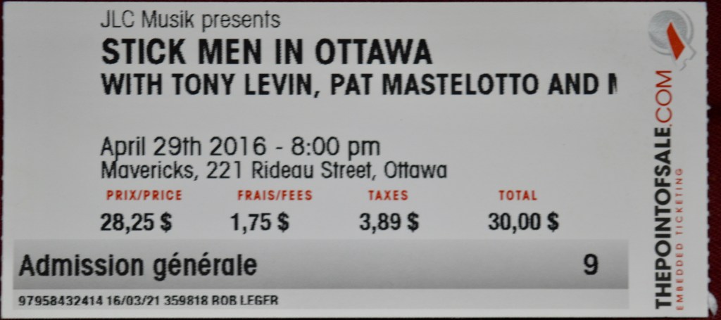 In retrospect it’s hard to nail down all the factors that went into me leaving the Stickmen show at Maverick’s on April 29th, 2016 about halfway through their performance. Could it really be that I found the music so…unmusical?