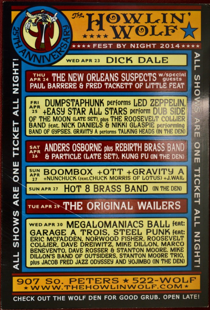 April 30th, 2014 was very close to the start of the first of what has become my annual pilgrimage to the womb of music: New Orleans*. I was there for a friend’s 40th birthday party along with a myriad of other friends from all over North America and together we formed an impressively raging crew of happy hardcore live music fanatics that tended to travel en masse from one show to another buying rounds of craft beers and high-fiving each other a lot after key solos and/or tequila shots.