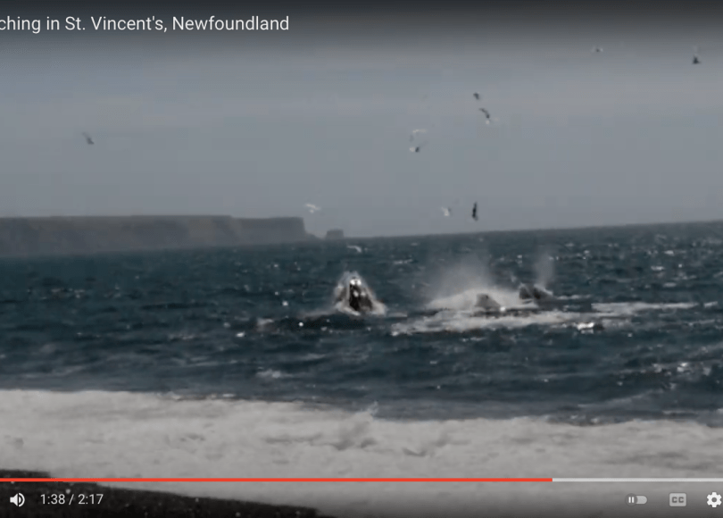 Every summer the island of Newfoundland gets surrounded by whales as they chase their food in towards the shore. Astoundingly, about ninety minutes south of St. John’s you can stand on the beach and watch the whales jumping for capelin just a few metres from shore! Just outside the town of St. Vincent’s aside a kilometre-long causeway is a small parking lot with a gazebo and some benches fronting a wide stoney beach. Randomly throughout the season the whales will start jumping and hundreds of people armed with lawnchairs, cameras, tripods, and picnic lunches descend on the beach to take in the free show. On June 29th, 2021 I was among this crowd and I took a moment to shoot the above video.