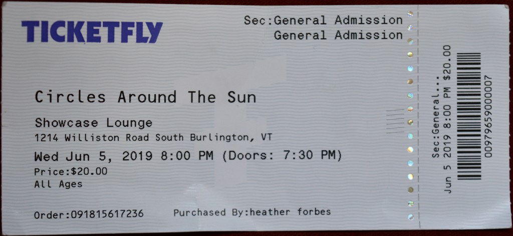 Which brings us (or me and m’lady, at least) to June 5th, 2019, when Circles Around the Sun played the closest place to Ottawa we could hope for, at Higher Ground in Burlington, Vermont, just four hours away.