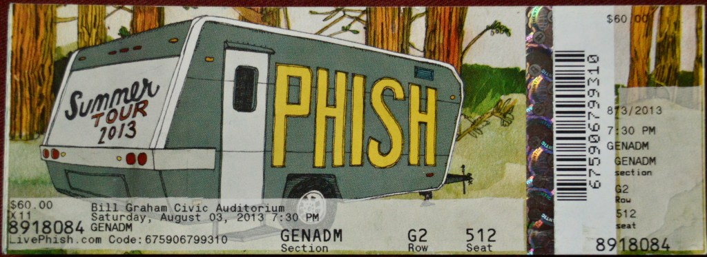 We arrived at the venue too late to find any bleacher seats. We discovered that they get swallowed up fast and we realized just how lucky we had been to find friends with extra sit-down space for us the previous night. Instead, we found a different friend on the floor not too far back from the stage, a guy named Todd who I had first met in and around a Phish concert in Massachusetts. He had brought a friend to the show who was wholly unfamiliar with Phish beyond their reputation as a Dead-like hippie band and I had a lot of fun getting his fresh impressions throughout the set.