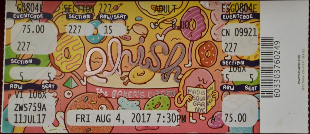 August 4th, 2017 was the date of my 100th Phish concert. The show was at MSG, night eleven of the Baker’s Dozen run, the doughnut was lemon poppy seed, the band closed the second set with a killer Fluffhead, I didn’t sit in my actual seat and the strangers sitting beside me were so nice they were almost as cool as the strangers sitting behind me. It was an epic show and a fantastic time.