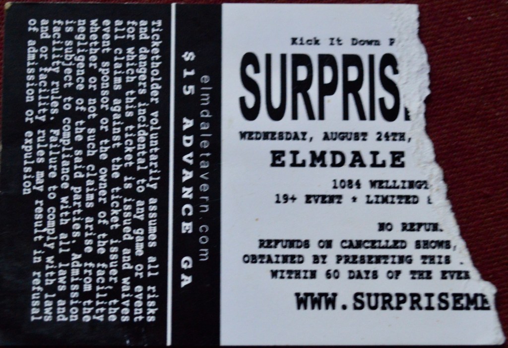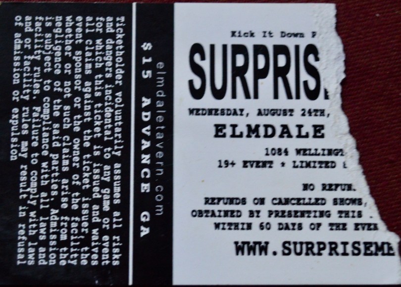 *I just came across it: it was Bumpin’ Binary (which is a duo featuring Don Cummings on the B3 organ and my good friend Mike Essoudry on the drums) playing at the Elmdale on March 29th, 2015 with Tony D sitting in on the guitar (Tony’s longtime sax player Zeke Gross sat in for a bunch of songs too). My late friend Bradm taped the show and uploaded the recording to archive.org where you can listen to it anytime you want. Incidentally that is where he also uploaded his recording of the Surprise Me Mr. Davis show that is the focus of today’s story (Bradm recorded a lot of shows). I’m listening to it right now and I was mistaken; SMMD definitely played at least one or two The Slip songs.