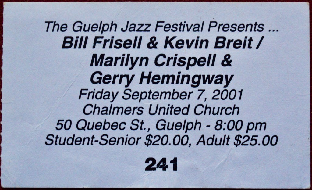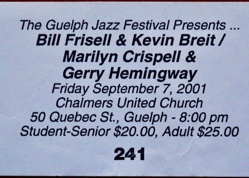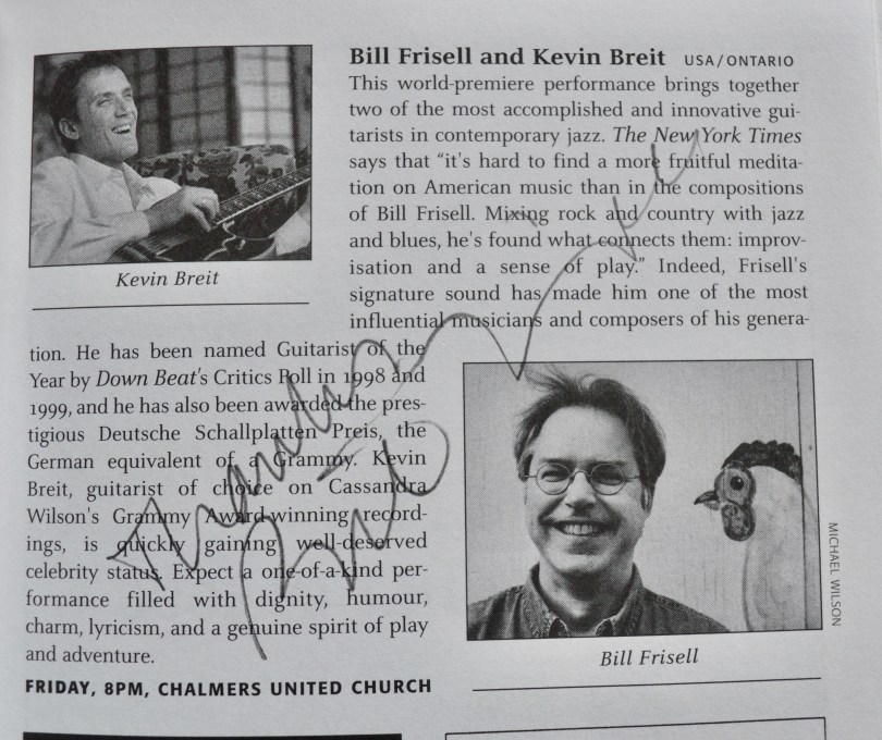 And what was the concert that was worth so much manic driving? Well, the relatively small but wonderfully niche Guelph Jazz Festival had paired my two favourite guitar players – Kevin Breit and Bill Frisell – to play together for the first (and only?) time, and in a quaint little church at that. So like I say I got to Guelph very early, and knowing nobody in town (or so I thought…) I had nothing to do but to linger outside of the Chalmers United Church and wait for the doors to open.