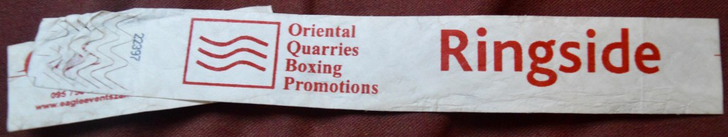 And there, near the bar inside the restaurant was stand-alone sign that read “Tickets for upcoming boxing match available here.” I stood next to the sign and bought two tickets to the bout. I rarely opt for VIP tickets, but given that they were so cheap (I think regular tickets were around $5, VIP’s were perhaps $7 or so) I shelled out the extra clams.