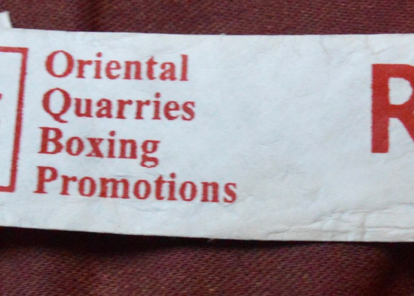 And there, near the bar inside the restaurant was stand-alone sign that read “Tickets for upcoming boxing match available here.” I stood next to the sign and bought two tickets to the bout. I rarely opt for VIP tickets, but given that they were so cheap (I think regular tickets were around $5, VIP’s were perhaps $7 or so) I shelled out the extra clams.