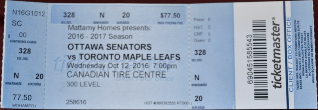 As always, the place was full of Leafs jerseys. Grrr…I hate that! Every time Toronto or Montreal comes to town you know there will be more fans for the visiting team than for the hometown Senators. And I suppose until the Sens have been around (continuously) for several generations it will stay that way.