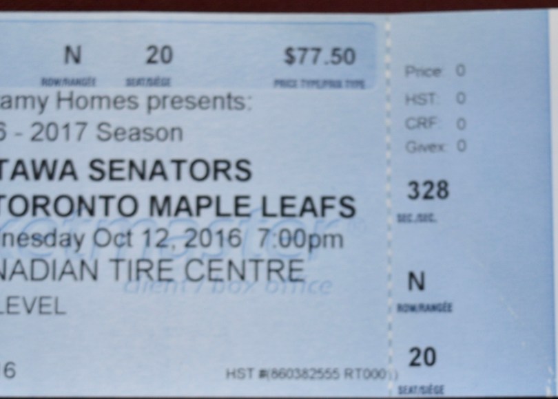 As always, the place was full of Leafs jerseys. Grrr…I hate that! Every time Toronto or Montreal comes to town you know there will be more fans for the visiting team than for the hometown Senators. And I suppose until the Sens have been around (continuously) for several generations it will stay that way.