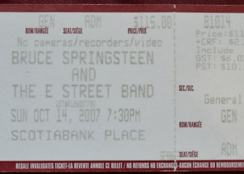 On October 14th, 2007 I saw my second-ever Bruce Springsteen concert. The first time I saw him – more than two decades previously – had been an eye-opener to say the least. As any live music fan will tell you, Bruce Springsteen is the realest of deals; the man is the epitome of hard-working rock and roll and he consistently delivers a this-could-be-the-last-show-of-my-life kind of performance. A true magician in the world of open-chord rock, his punchy, sweat-driven concerts are the stuff of legend despite being almost completely devoid of such regular concert trappings as blinding light shows and flashy guitar solos.