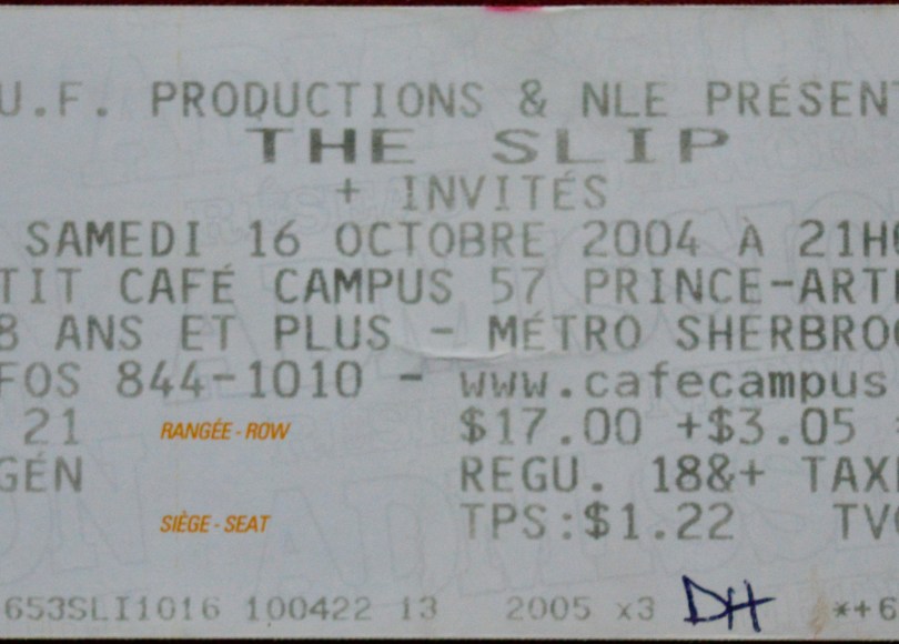 Anyway, I won’t get directly to the show in question because I really can’t recall much about it at all, aside from a moving snapshot in my mind of watching the band from the back half of the bar through obstructed sightlines. Funny, I figured that I’d been to Cafe Campus several times but I just checked and it looks like this was my only time seeing a band there (other than a possible nero show or two, but I recall most of their Montreal plays happening at Le Swimming) so yeah, the band I can almost see in my mind-photo is nearly certainly The Slip.