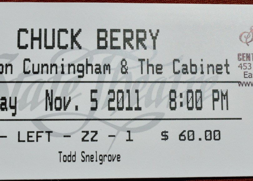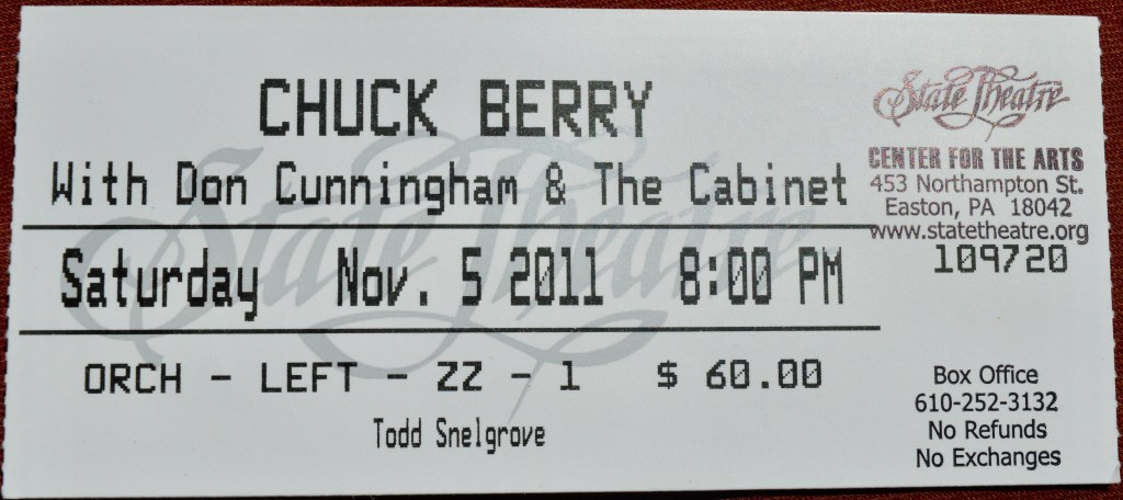 So, when it occurred to me that Chuck Berry was still alive and kicking (and occasionally touring) I watched his meagre tour schedule closely. He seemed to play a gig a month at his manager’s club in St. Louis and I considered using my airmiles for a quick in-and-out, but when he announced a one-off show in Easton, Pennsylvania on November 5th, 2011 that coincided with a nearby Dead show I grabbed a pair of tickets and filled the gas tank.