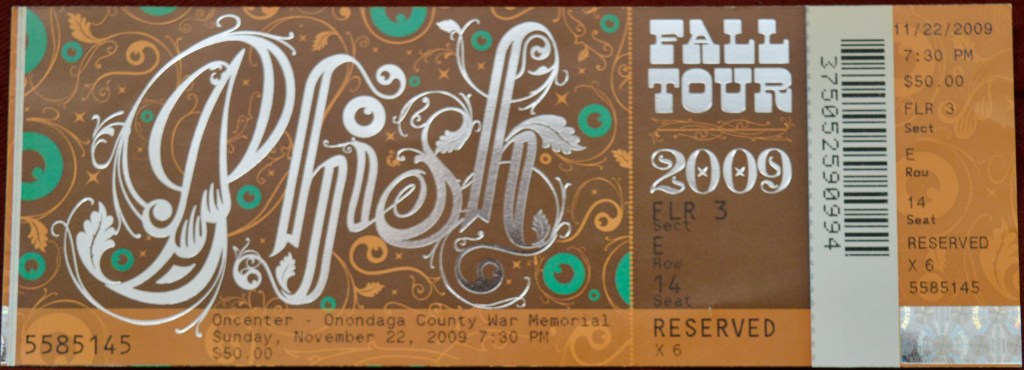 On November 22nd, 2009 I continued my new-ish habit of seeing way more Phish concerts than most people I’ve ever known, albeit way less than most of the people I was starting to meet. This time the show was in Syracuse, a near-enough stop on their fall tour to warrant a quick in-and-out drive from my house to the US of A, and I had a really great time.
