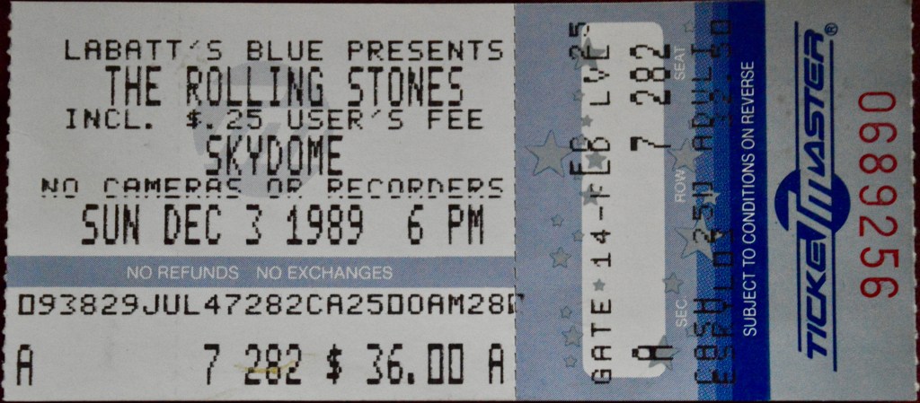 Sometime shortly before I moved to Ottawa The Rolling Stones released a new album (Steel Wheels) and announced their first American tour in eight years. In other words this would be the first time I had a chance to see the Stones since I had become a fan and I was pretty determined to go. They had two concerts booked at the Skydome in Toronto and I knew I would be living relatively nearby in Ottawa by the time the shows came around so I decided to try for tickets.