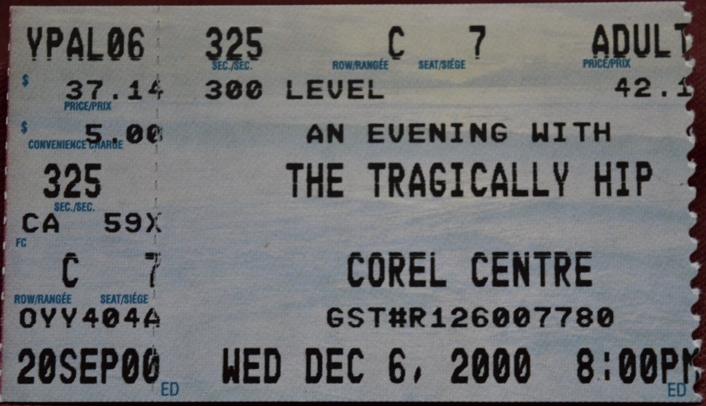 On December 6th, 2000 I saw The Tragically Hip just down the road from home at the Corel Centre (née The Palladium, future-née Scotiabank Place and future-future-née the Canadian Tire Centre). It was a one-nighter, in the middle of the band’s extensive cross-Canada tour in support of their latest album Music @ Work.