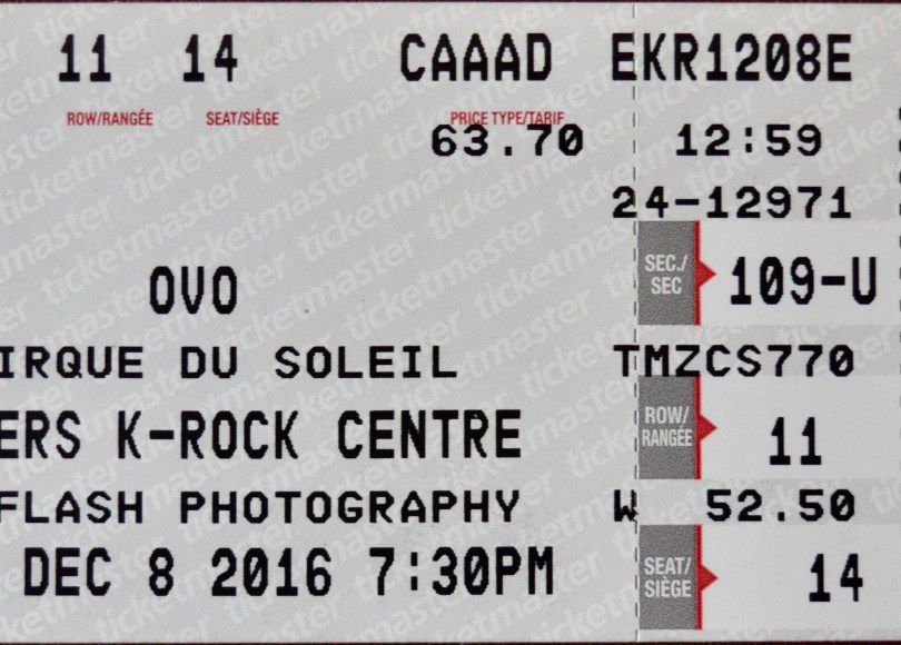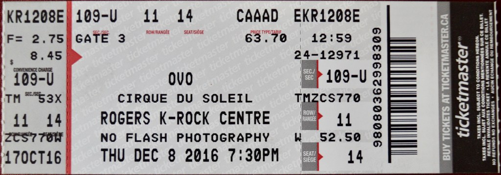 On December 8th, 2016 I used Cirque du Soleil as an excuse to visit my buddy Jojo in Kingston. I was on quite a Cirque kick at the time, having seen two shows already in 2016 (Kurios and Luzia) and I had another coming up in Mexico a month later (Joyà) so when I saw that Cirque was bringing their show Ovo to Kingston it was a no-brainer: I bought a ticket for Jojo as a Christmas present and m’lady and I drove to town and took up residence on his couch for the night.