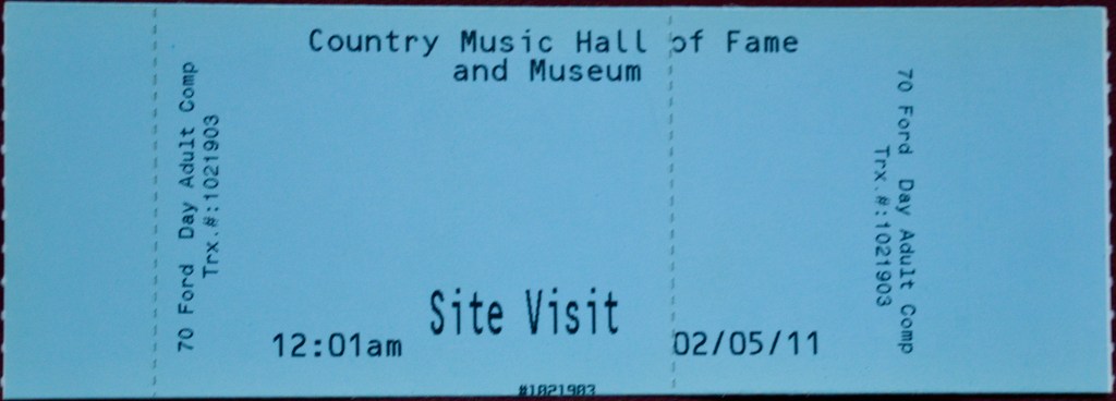 On February 5th, 2011 I made an unscheduled stop at the Country Music Hall of Fame. I was in the early stretch of my self-researched and personally curated Rock & Roll Field Trip From Hell which had brought me (of course) to Music City: Nashville, Tennessee. The previous day I had checked several things off of the list: a visit to Gruhn’s Guitars (the best used guitar shop in America), a set featuring some of Nashville’s hottest up-and-comers (or so we were told) at the Bluebird Cafe, and of course a whole lot of Honky-Tonkin’ (which is the Nashville-specific name for bar-hopping from one live music venue to another along Lower Broadway).