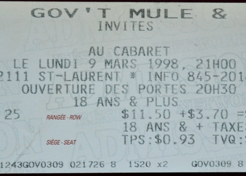 My ticket book tells me there was an opening band called Pothole; I don’t remember them at all but I’m guessing from their name that they probably weren’t that great. But I’ll tell you who was great: Gov’t Mule.