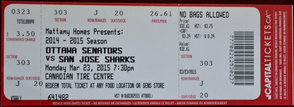 On March 23rd, 2015 I made what was becoming a fairly regular pilgrimage out to the Palladium for another hockey game. This was the season that my interest in the sport really started to take off and I ended up going to an unprecedented number of live games. This one saw the Ottawa Senators take on the San Jose Sharks and whattya know, it was bobblehead night.