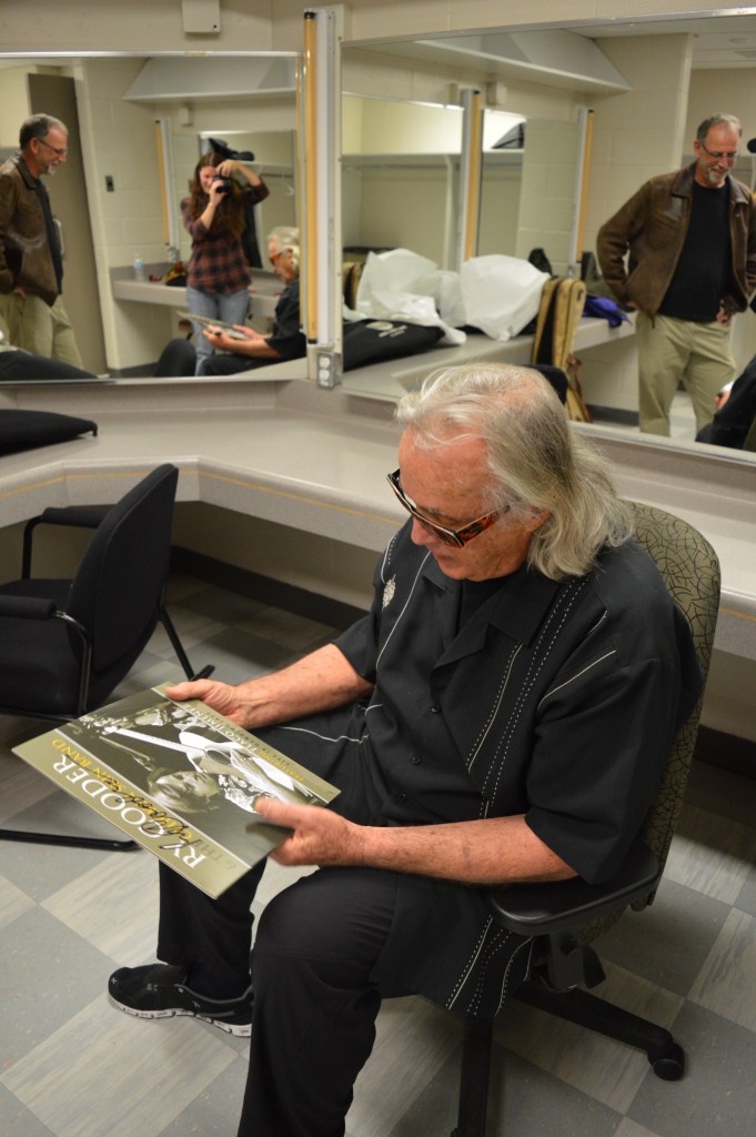 I had arranged to meet Ry Cooder before his concert at Ottawa’s Centrepointe Theatre on April 14th, 2016 to get some things signed for Instruments For Africa. Ricky Skaggs was opening the show so I brought my mandolin and one of his records along as well just in case I ran into him while I was there. Turns out I didn’t have to feel so lucky as both the opener and headliner did a meet-and-greet at the merch table after the show. You can read about it here.
