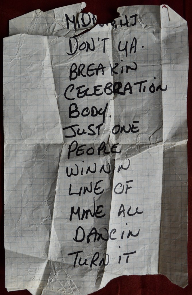As the opening act of my first-ever concert (on August 19th, 1983 at the Moncton Coliseum), The Headpins were the first band I ever saw live. I walked out of that concert with an entirely new lease on life, not to mention lead singer Darby Mills’ towel, the setlist torn from her monitor, and a drumstick that I had deftly snatched out of midair at the end of their set. The drumstick and towel were in a suitcase of personal effects that was mysteriously lost in Fredericton several years later but the setlist was in a completely different suitcase that was even more mysteriously found in Fredericton, the same several years later. I still have the setlist, pictured at left.