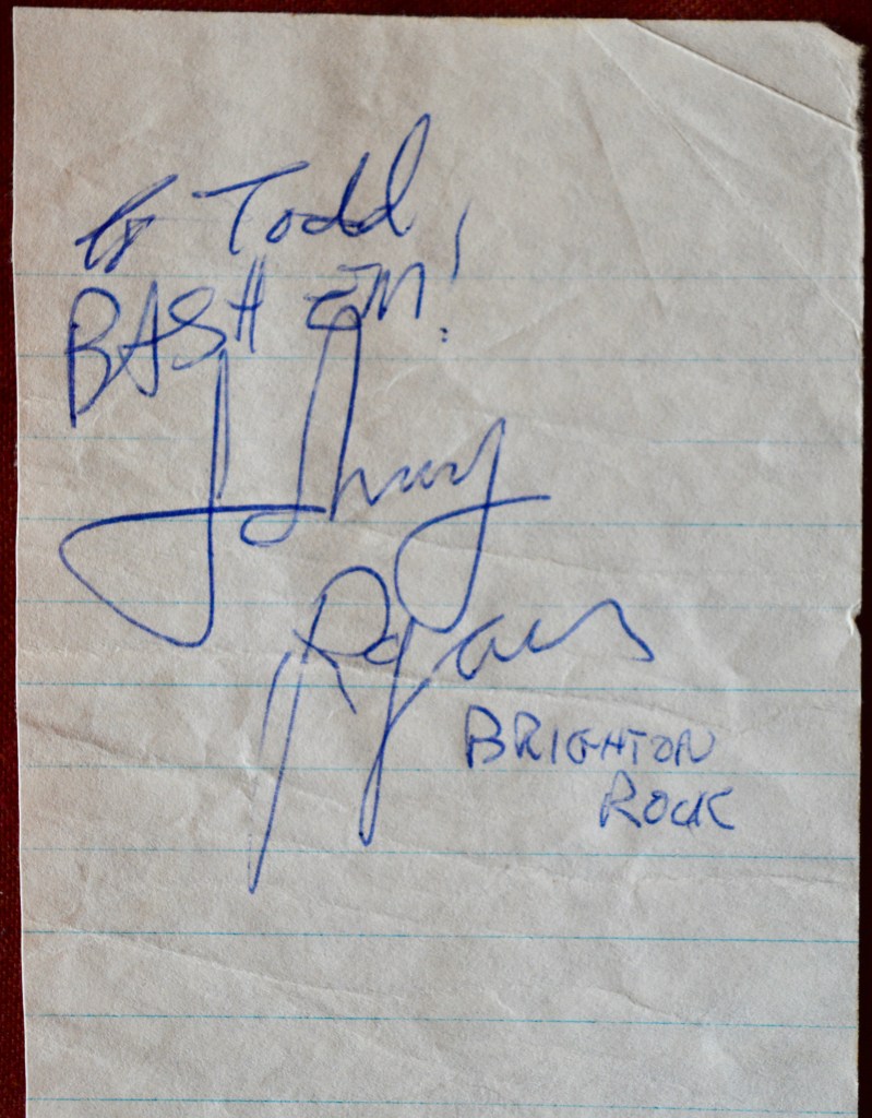 Don’t feel bad if you don’t remember Brighton Rock. They were a hair-metal band from Niagara Falls that peaked at like #87 or something on the Canadian charts back in the mid-’80’s. I saw them opening for Triumph at the Moncton Coliseum on January 17th, 1987 (you can read about the concert here). After the show I ran into a friend who brought me backstage with him where I was excited to meet both bands. During the interaction Brighton Rock’s keyboardist Johnny Rogers signed the scrap of paper you see at left. I have no idea why I didn’t get the whole band to sign it.