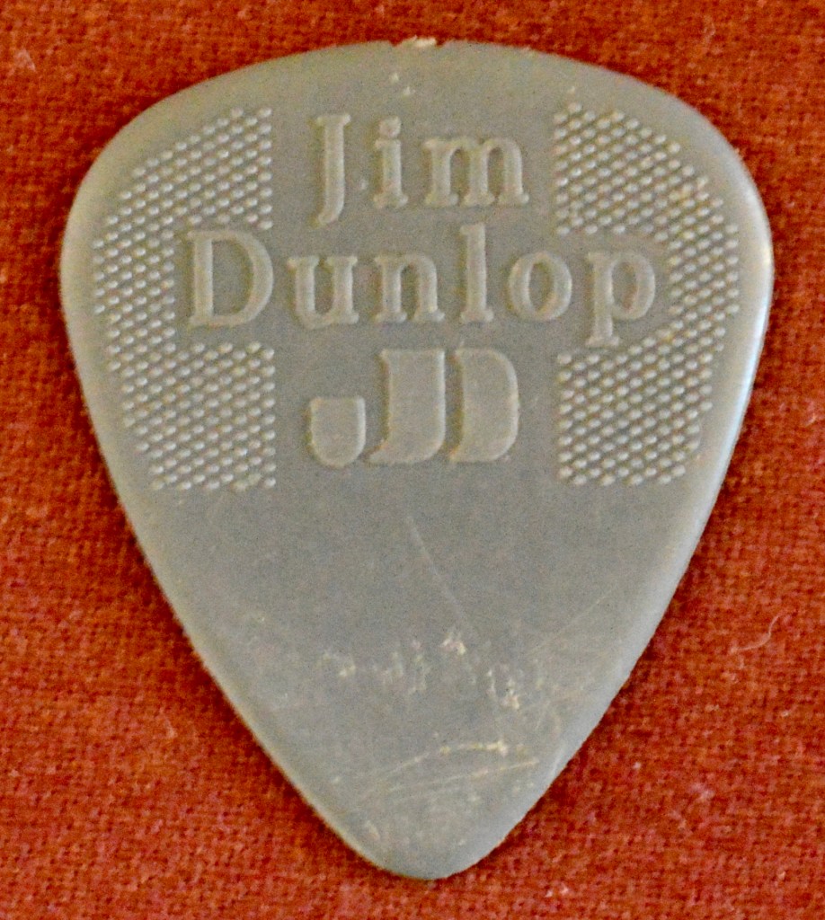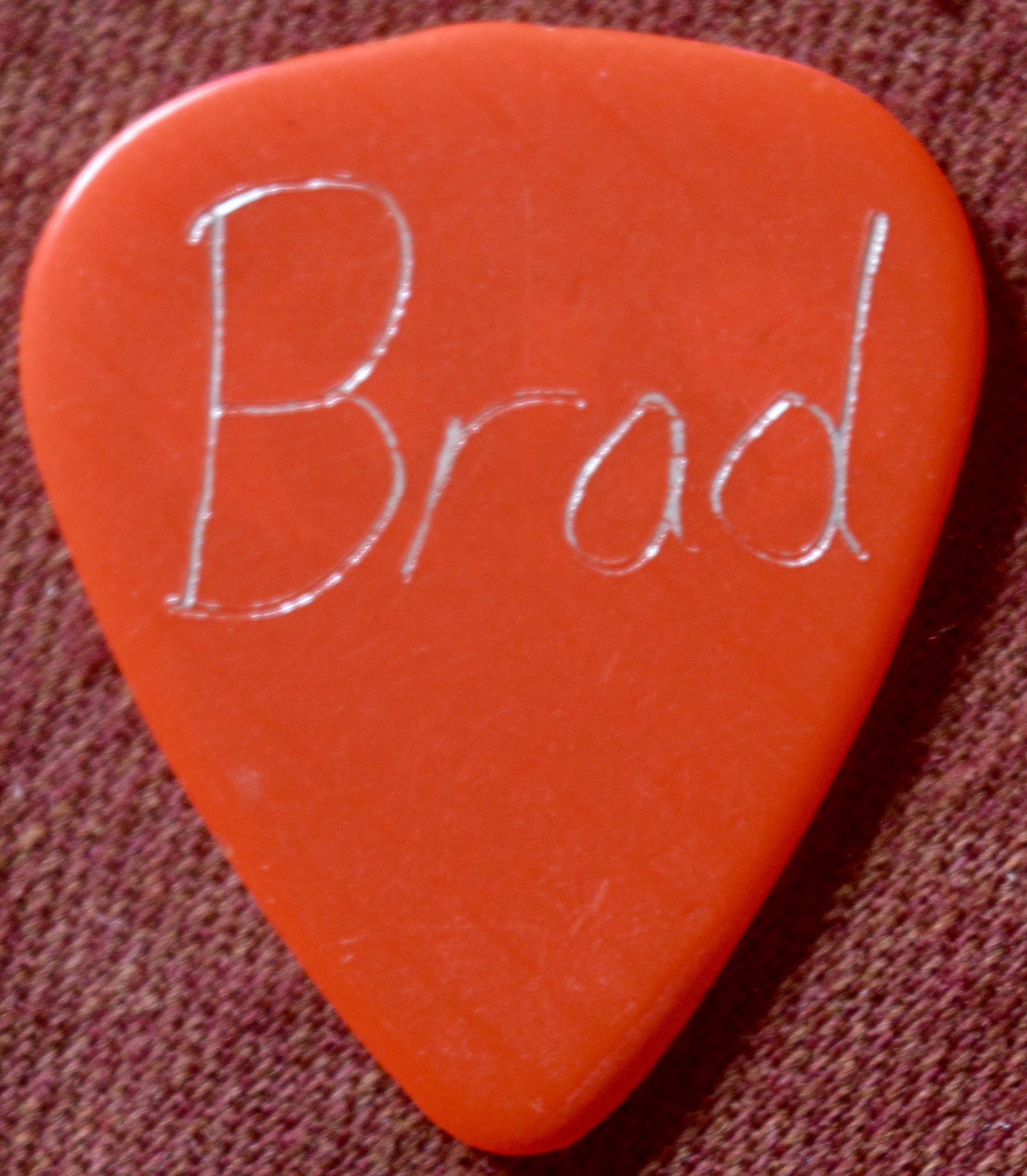 This one is a bit of a mystery. This pick is obviously from the band The Pursuit of Happiness and it sure looks like it probably belonged to bassist Brad Barker (the only Brad who has ever been in the group). But the thing is wikipedia tells me that Brad only joined the band in 1990 and the only time I’ve ever seen TPOH was at Porter Hall during Frosh Week at Carleton University: September 8th, 1989. It could be that wikipedia is wrong though there is an inkling in my memory of maybe possibly roadie-ing a TPOH show at Carleton in my 2nd or 3rd year, though the internet can’t seem to back me up there either.