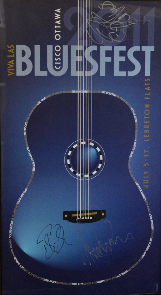 The poster at left was signed by singer Robin Zander, guitarist Rick Neilson, and bassist Tom Petersson of Cheap Trick just an hour or so before the mainstage collapsed on top of the band during their performance at the Ottawa Bluesfest on July 17th, 2011. I did not meet the band; I purchased this poster through the Bluesfest’s charity poster program. You can read about that fateful day here.