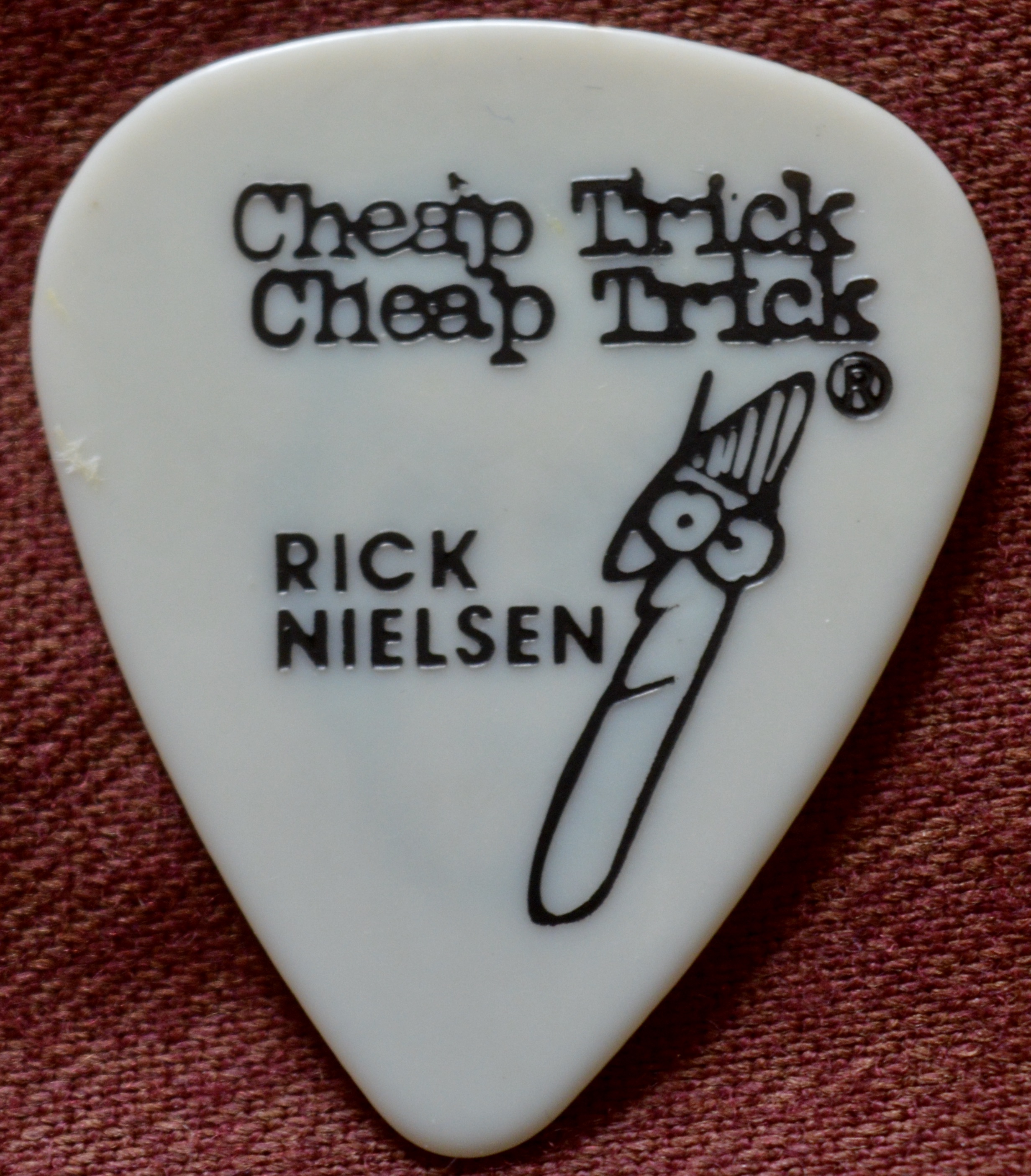 If you’ve ever seen Cheap Trick live then you know this: Rick Neilson tosses a lot of guitar picks into the crowd. Like, a lot. I’ve never personally caught one but the first time I saw Cheap Trick (on February 6th, 1989, plectrum picktured at left) I found one on the floor after the show and the last time I saw them (on May 13th, 2022, plectrum picktured to the right) a stranger gave me one at setbreak. I probably would have got one the second time I saw them too (at the 2011 Ottawa Bluesfest) except the stage collapsed onto the band halfway through the concert, which stopped the show dead in its tracks and emptied the venue.