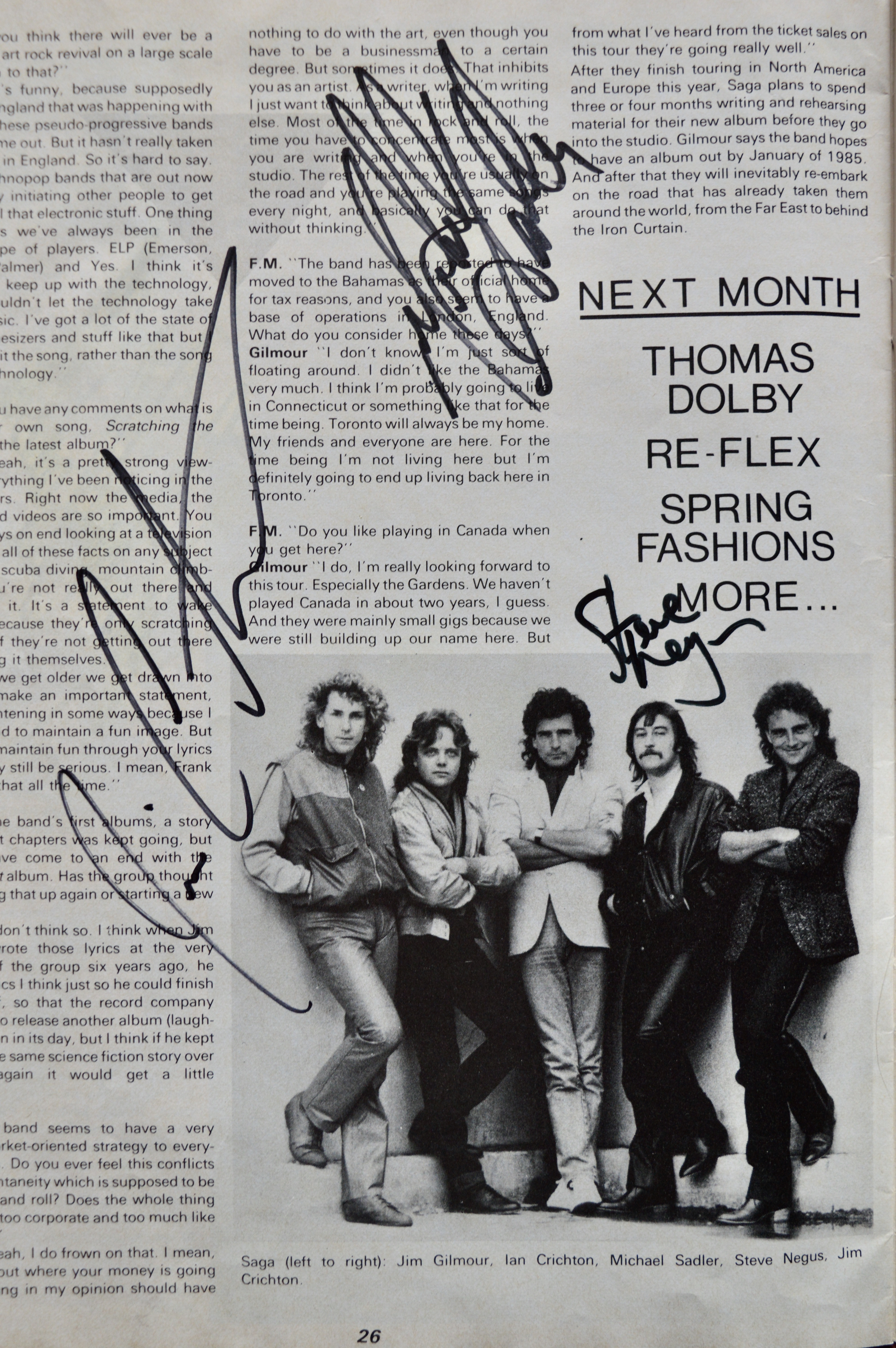 Instead I shook hands with bassist Jim Crichton, singer Michael Sadler, keyboardist Jim Gilmour, drummer Steve Negus, and guitarist Ian Crichton and had them sign every page of the article on them in that month’s free entertainment weekly. There weren’t very many people there so I ended up gushing endlessly at the band like the sixteen-year-old celebrity-struck know-it-all that I was I’m sure they were happy to see me finally walk out the door, ticketless.