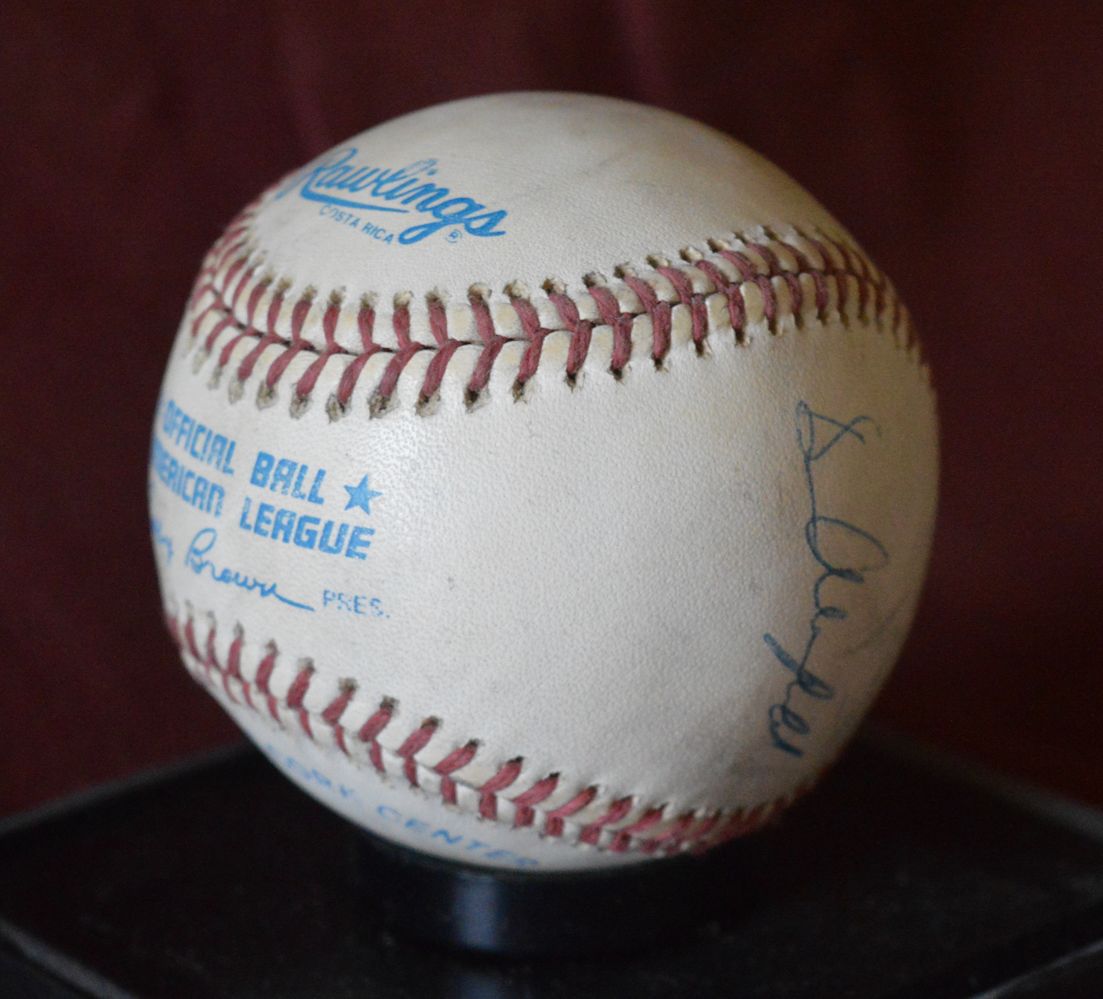 I got this baseball signed by Dave Winfield by sending in a huge pile of UPC codes to a Kraft/Blue Jays promotion. It must have been in 1992 because that’s the only year Winfield played for the Jays. I won’t tell you where I got all the UPC codes – the statute of limitations just ain’t long enough – but I sent in enough to get a bat signed by Joe Carter too, plus a set of Kraft-made Blue Jays trading cards that I haven’t seen in so long I assume they must be lost.