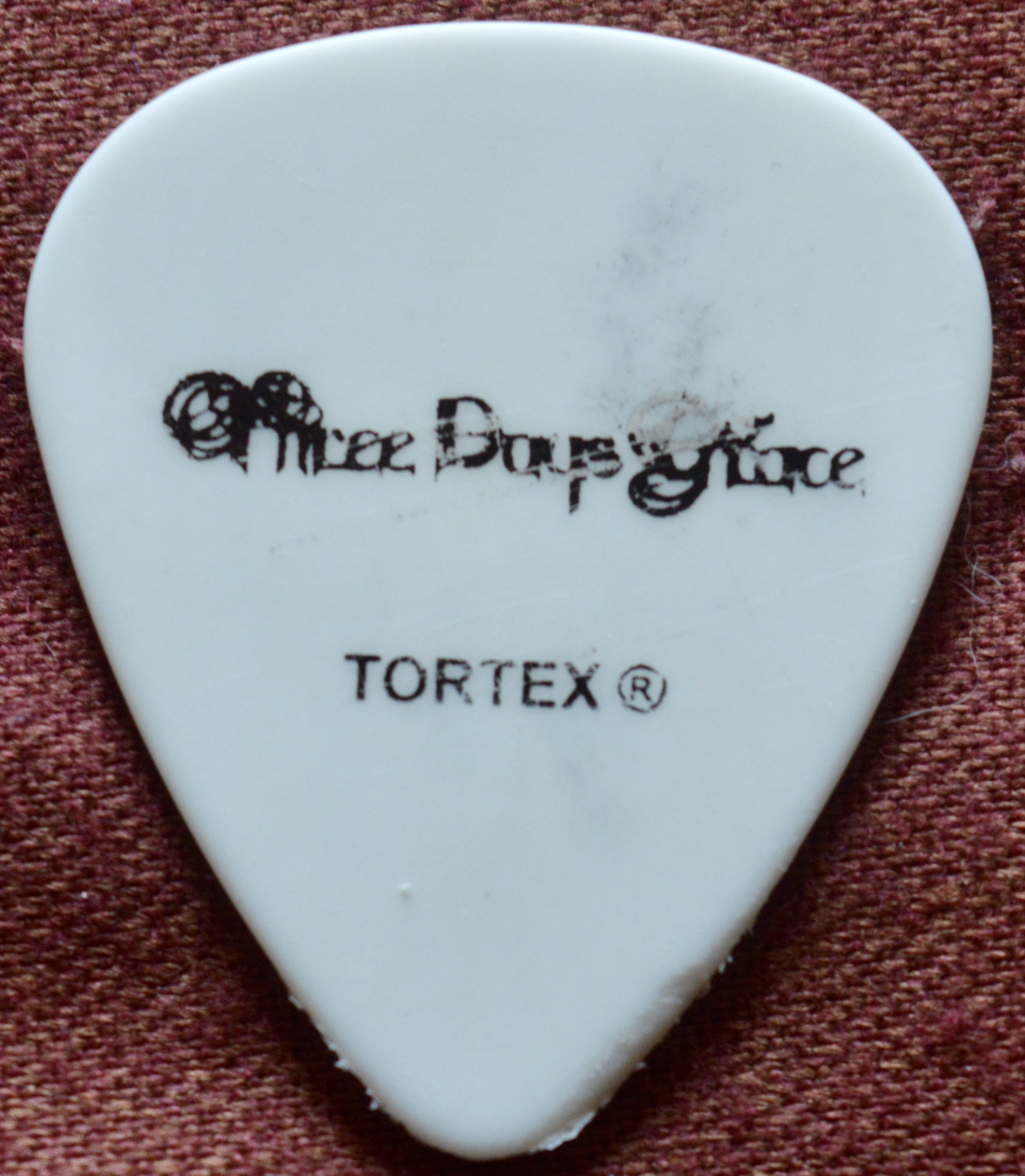 This is another question-mark-in-the-shape-of-a-guitar-pick. To the best of my knowledge (and my semi-extensive research) I have never seen Three Days Grace live though the aforementioned semi-extensive research proved that I’ve attended the Ottawa Bluesfest on three different occasions when the band was playing: July 10th, 2008, July 12th, 2011, and July 15th, 2018. And though I’m pretty darn sure that I didn’t see them at any of those shows I must have picked up this pick at one of them. My best guess is it was at the 2008 show. Back then I had a media pass that got me sidestage and in the photo pit and stuff, where it was much more likely that I might find such a thing.